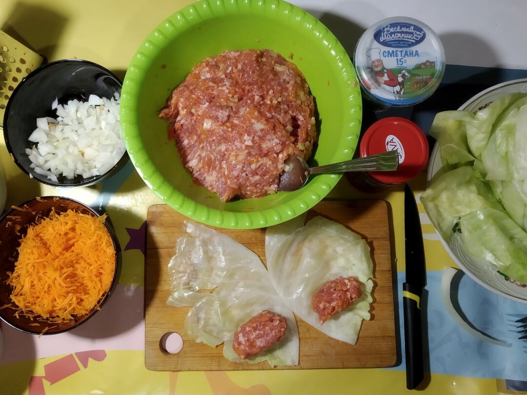 Примечание: этот рецепт предлагает вариант без риса, что делает голубцы более легкими. Если вы предпочитаете классический вариант, добавьте к фаршу 400 грамм риса, предварительно отваренного до полуготовности.