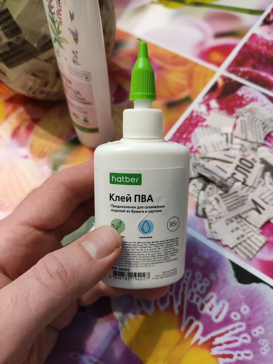 Теперь подготовим клей. Вам понадобится клей ПВА и кисточка средней ширины (например, №8 или №10).