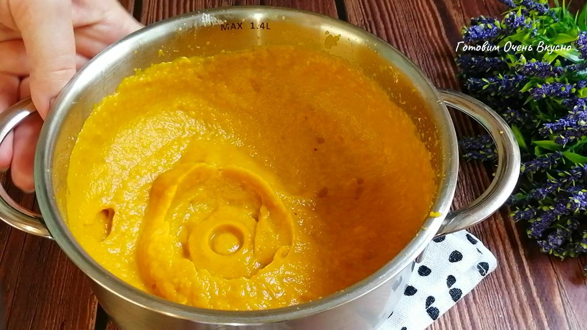 Варить до тех пор, пока тыква не станет мягкой, у меня на это уходит буквально 5 минут после закипания. Важно не переварить, иначе пюре получится слишком жидким. Время приготовления зависит от сорта тыквы