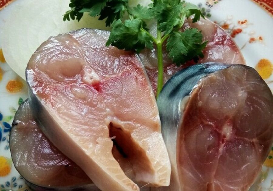 Пока вы ловите рыбу. Свежую скумбрию, избавляемся от черной пленки. Обрежьте головы, хвост и плавники.