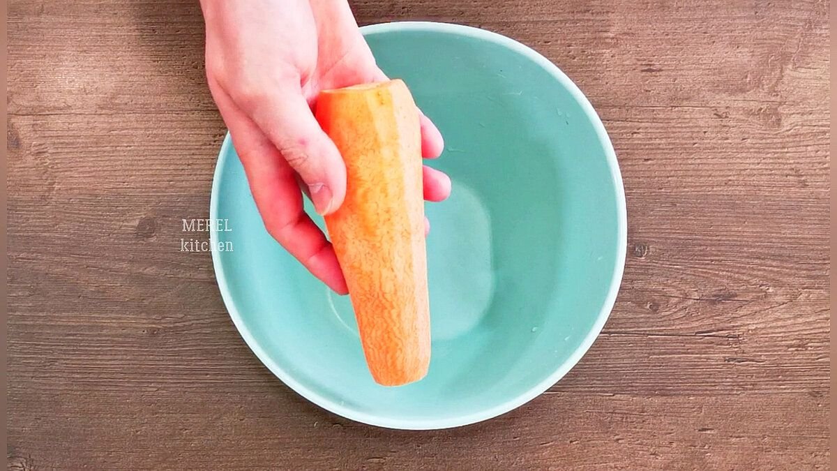 Капусту мелко шинкуем ножом, но обычно я это делаю овощечисткой, которой меня научила жена, это очень удобно и быстро, просто моя овощечистка сейчас сломалась, а купить новую просто не было времени один 😉Переложите капусту и тыкву в миску. Затем беру крупную морковку и натираю ее на корейской терке, но если такой нет, то можно нарезать очень тонкой соломкой или просто натереть на обычной терке.